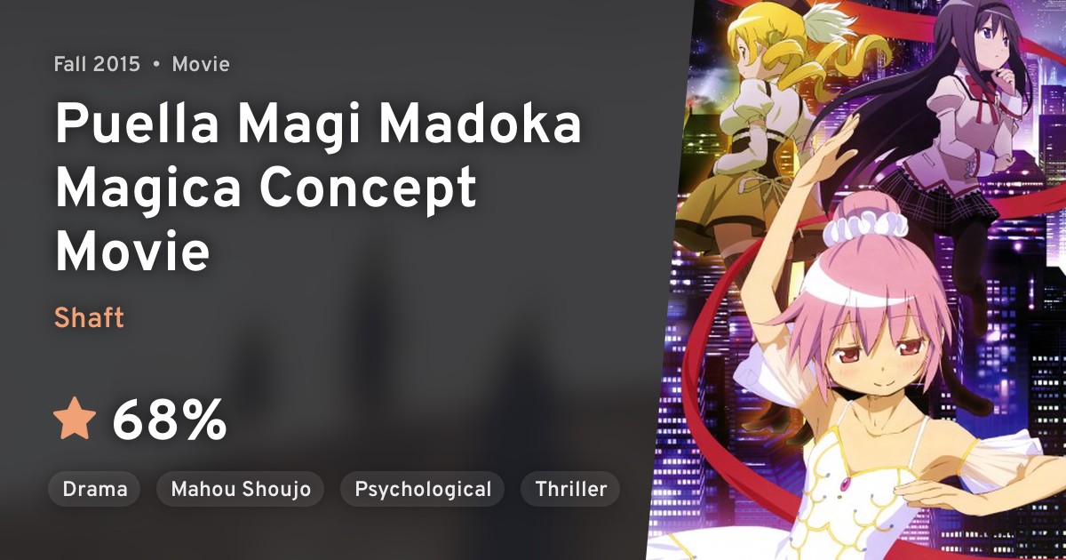 If you find this site serviceableness, please support us by sharing this posts to your preference social media accounts like Facebook, Instagram and so on or you can also Get this blog page with the title Puella Magi Madoka Magica Concept Movie by using Ctrl + D for gadgets a laptop with a Windows operating system or Command + D for laptops with an Apple operating system. If you use a smartphone, you can also use the drawer menu of the browser you are using. Whether it's a Windows, Mac, iOS or Android operating system, you will still be able to bookmark this blog.